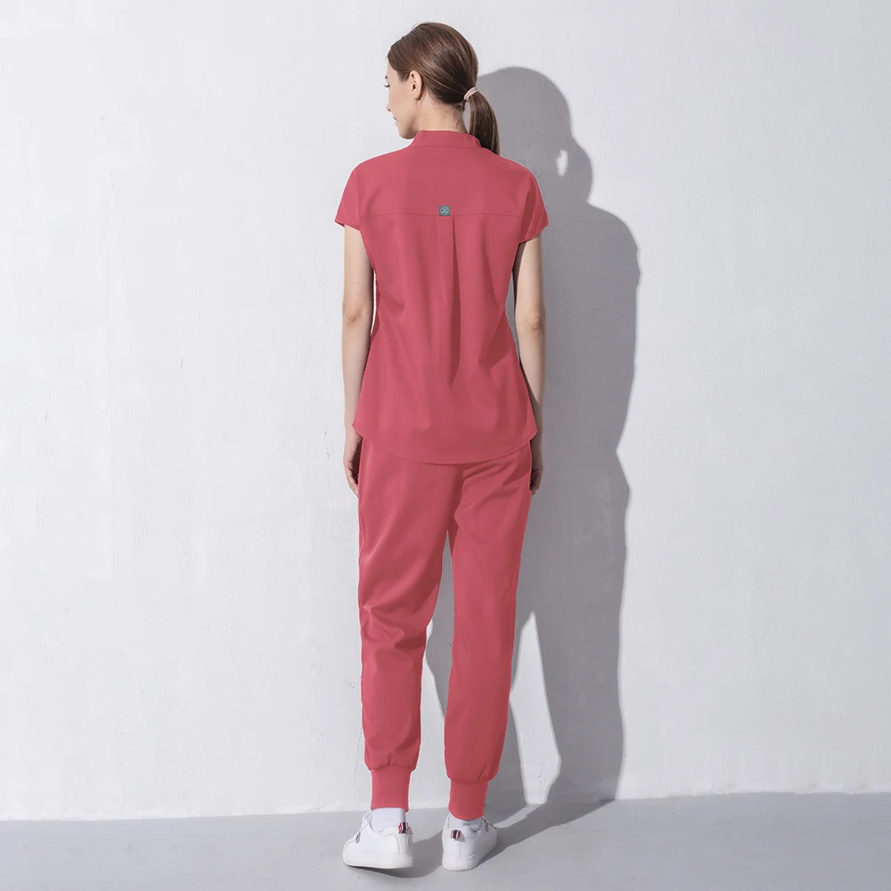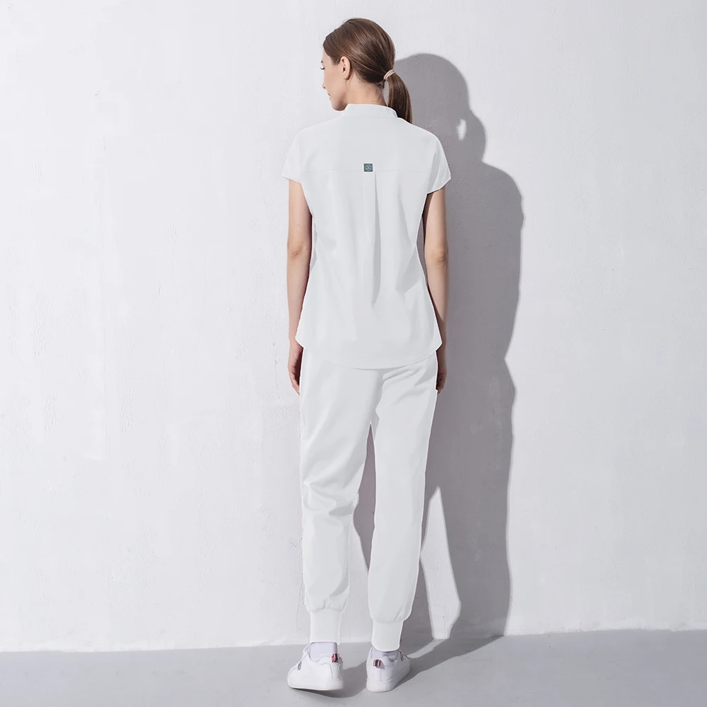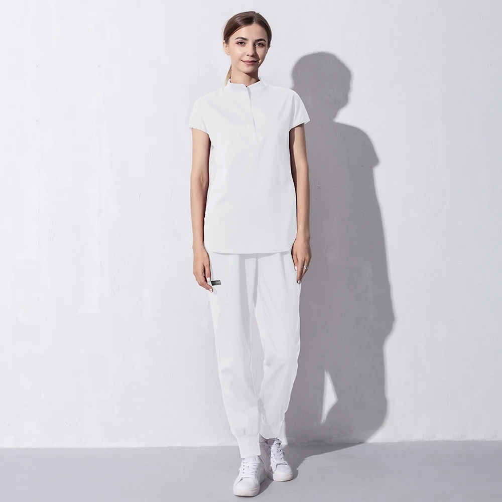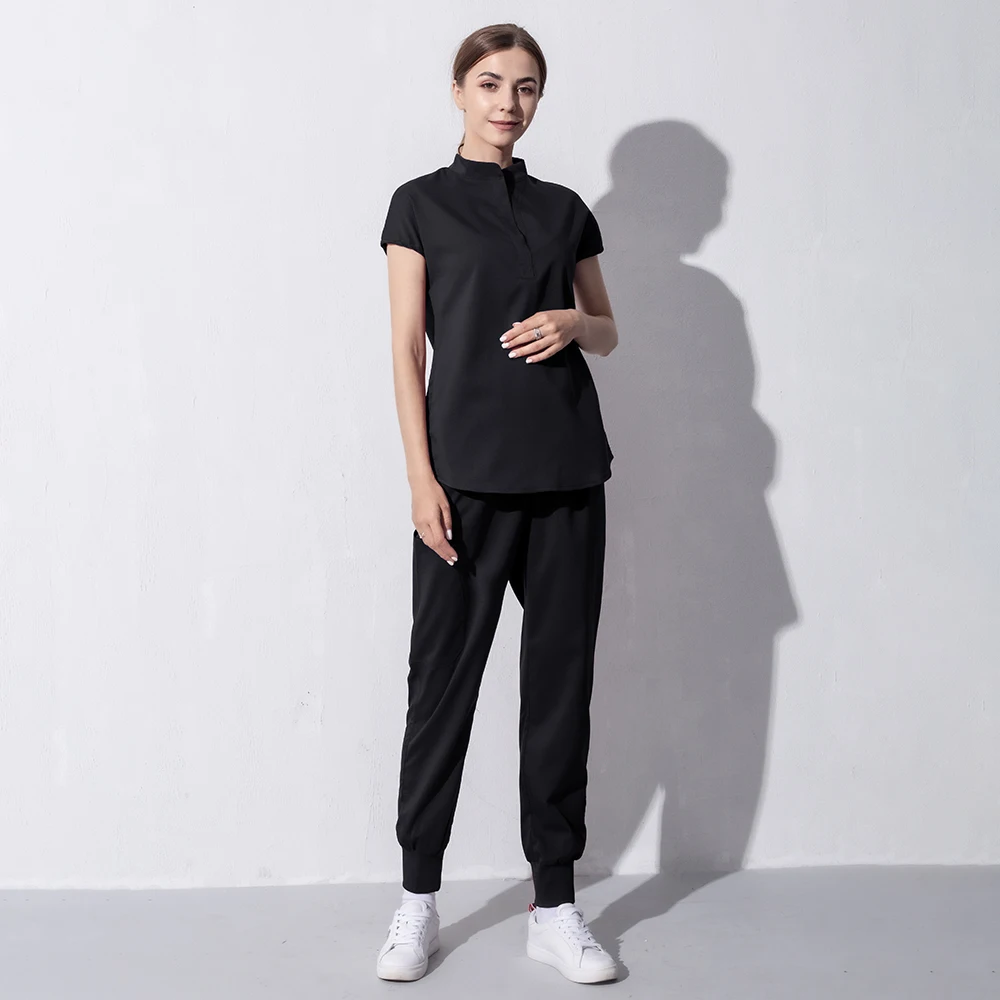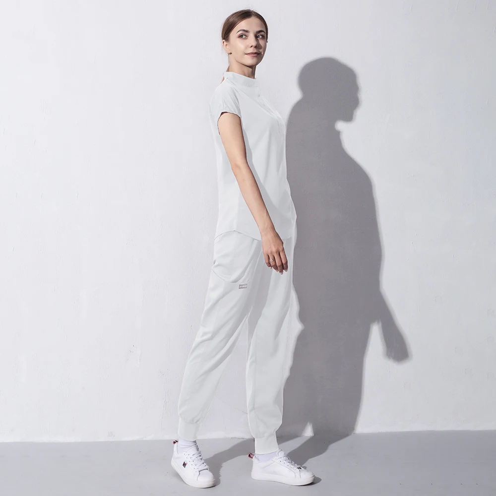 STRETCHY Beauty Salon Nursing Scrub Spa Uniform with Jogging Pants Set