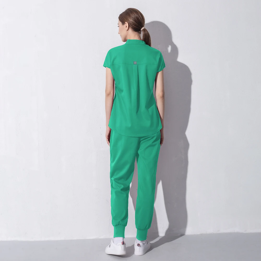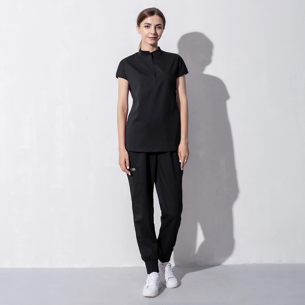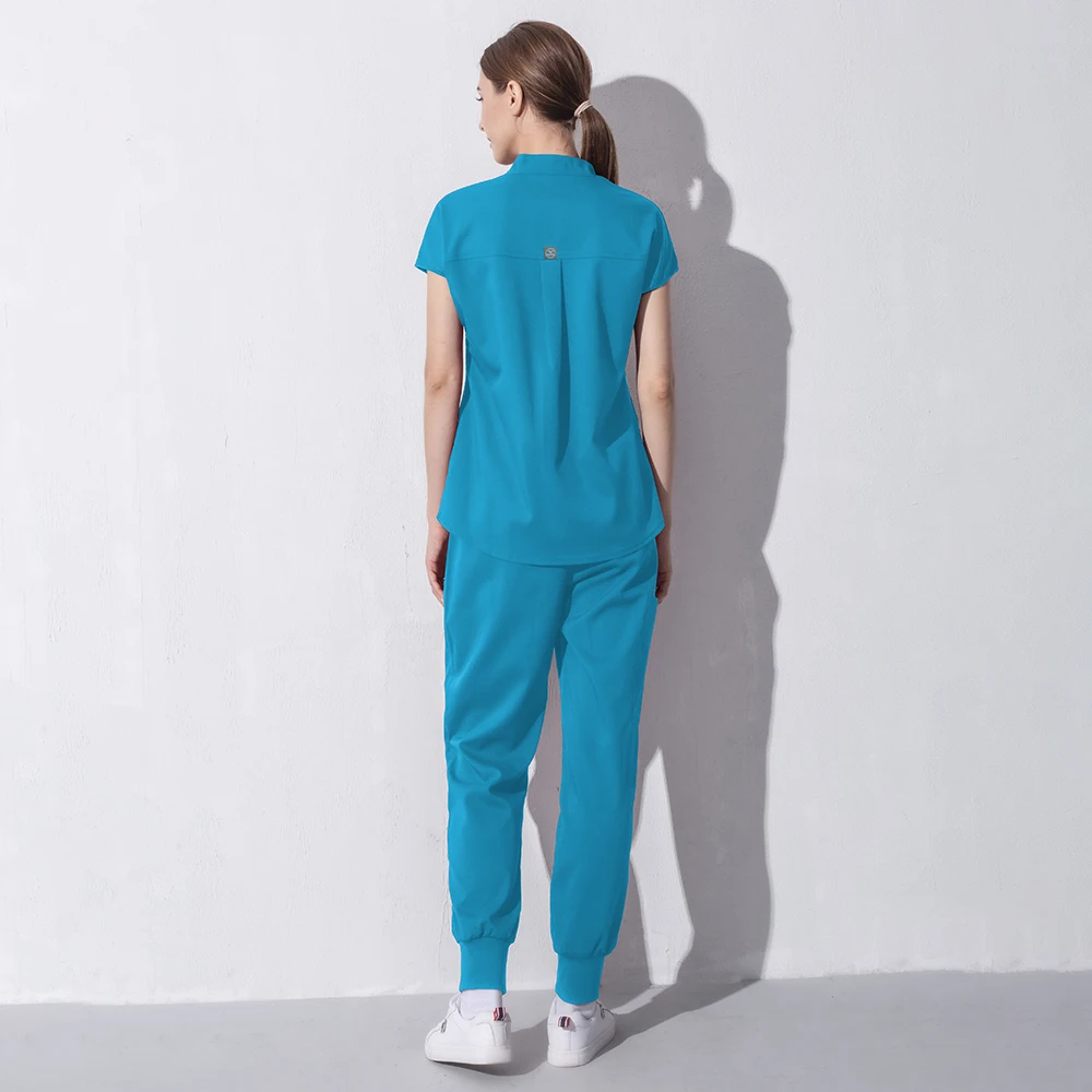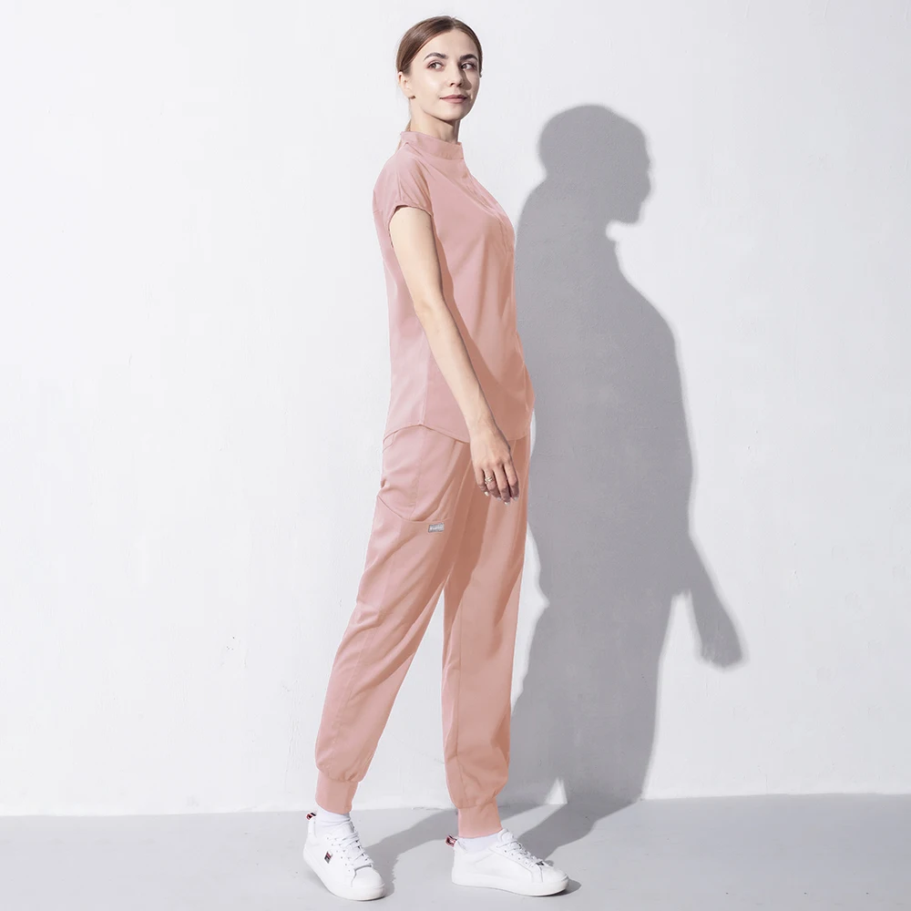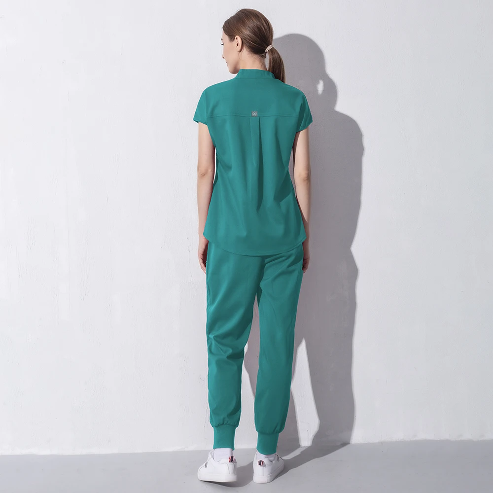 STRETCHY Beauty Salon Nursing Scrub Spa Uniform with Jogging Pants Set
