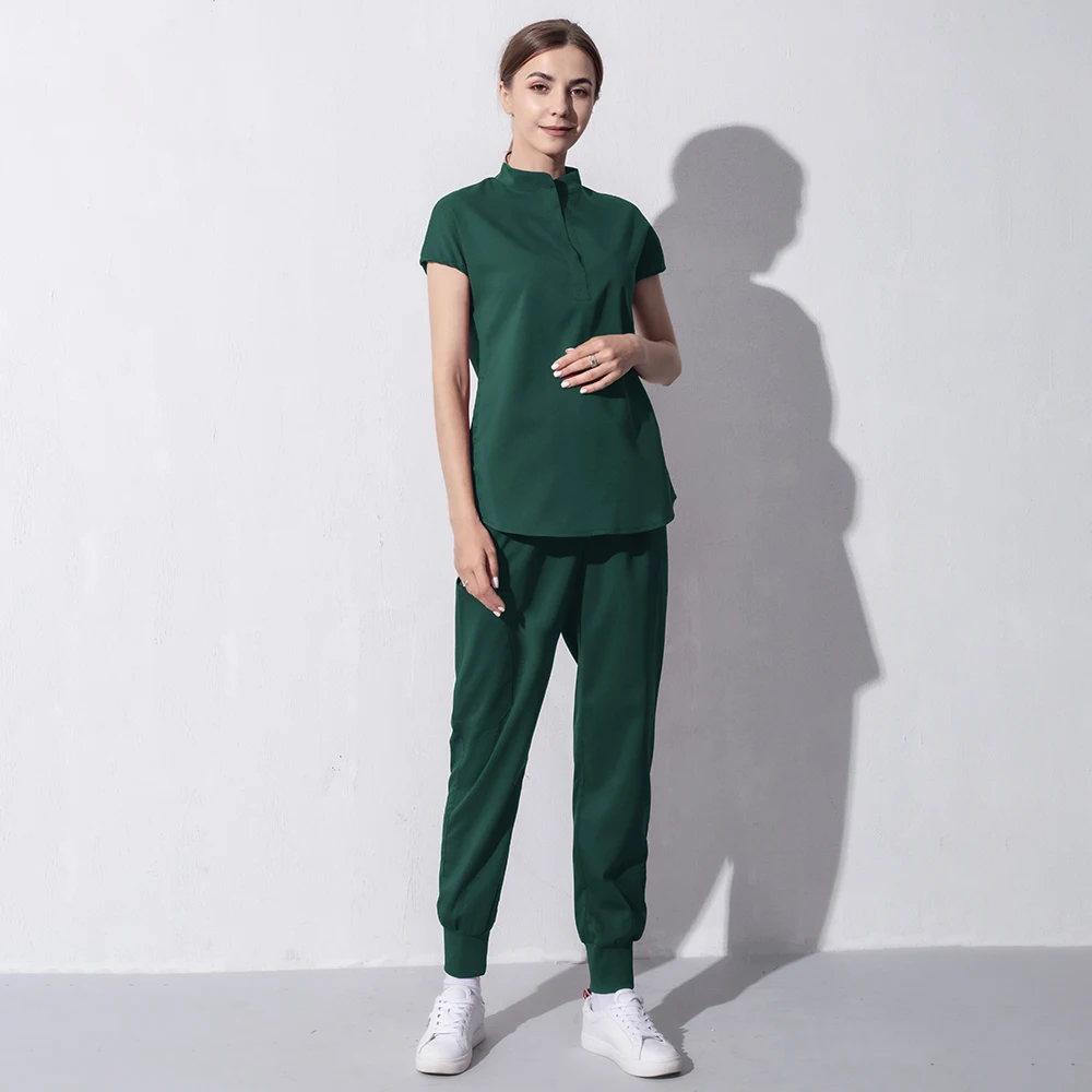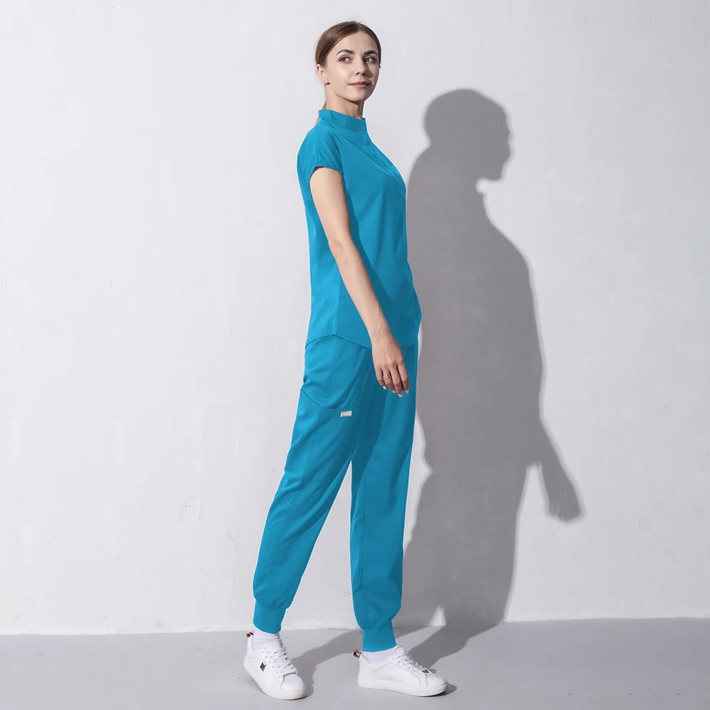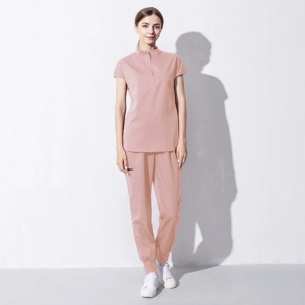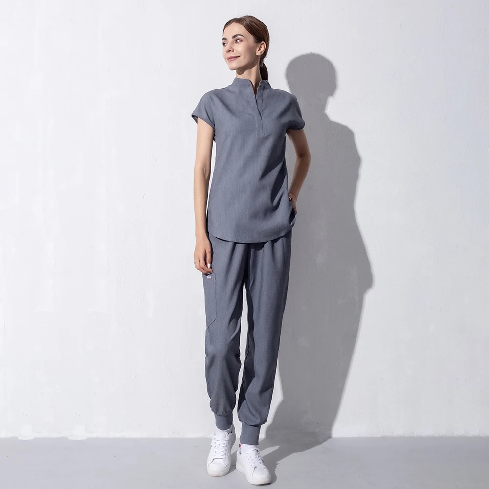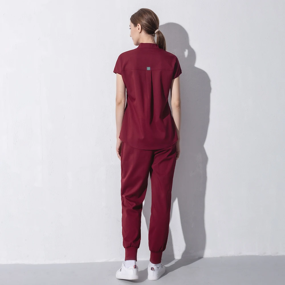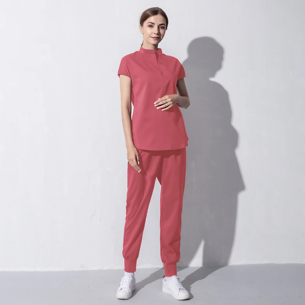 STRETCHY Beauty Salon Nursing Scrub Spa Uniform with Jogging Pants Set