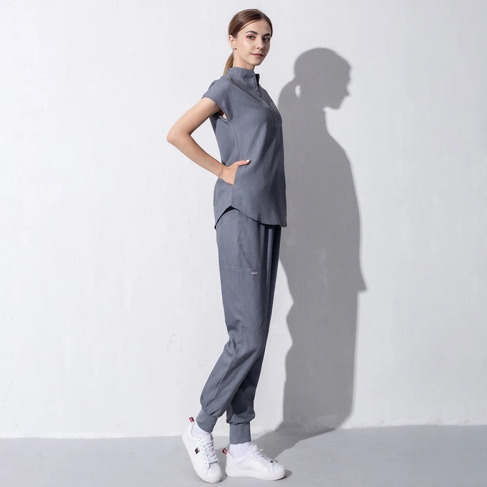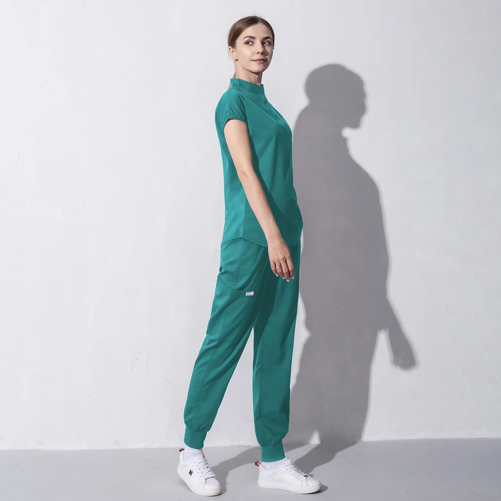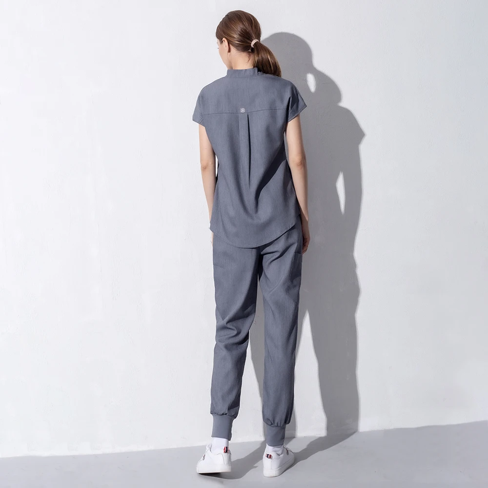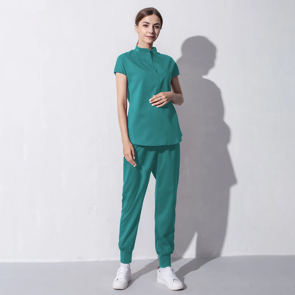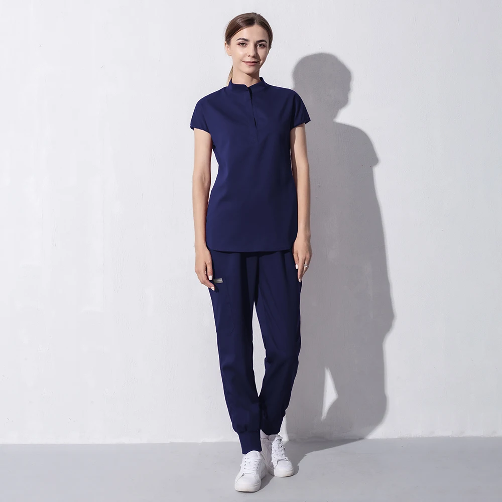 STRETCHY Beauty Salon Nursing Scrub Spa Uniform with Jogging Pants Set