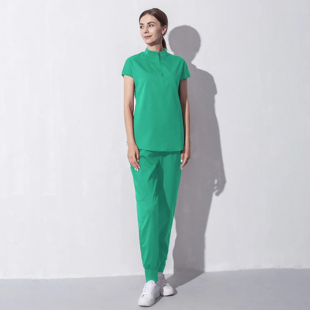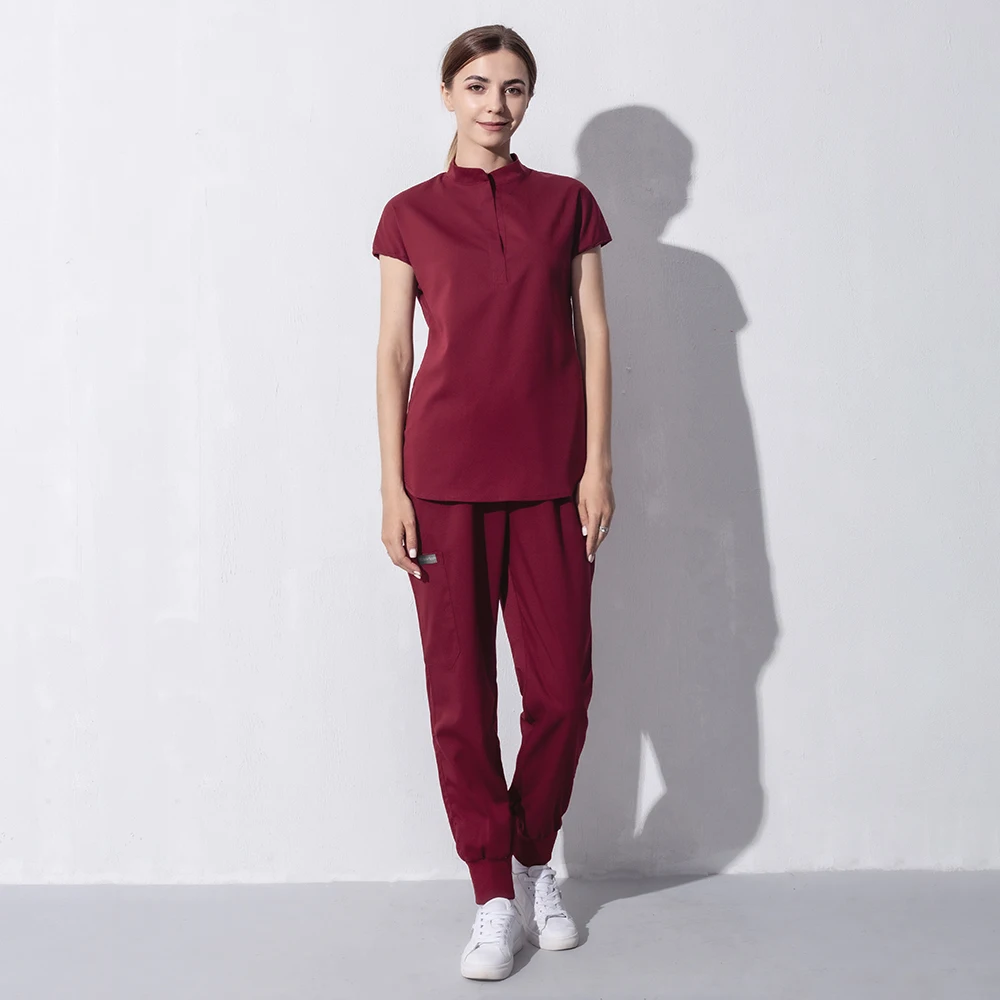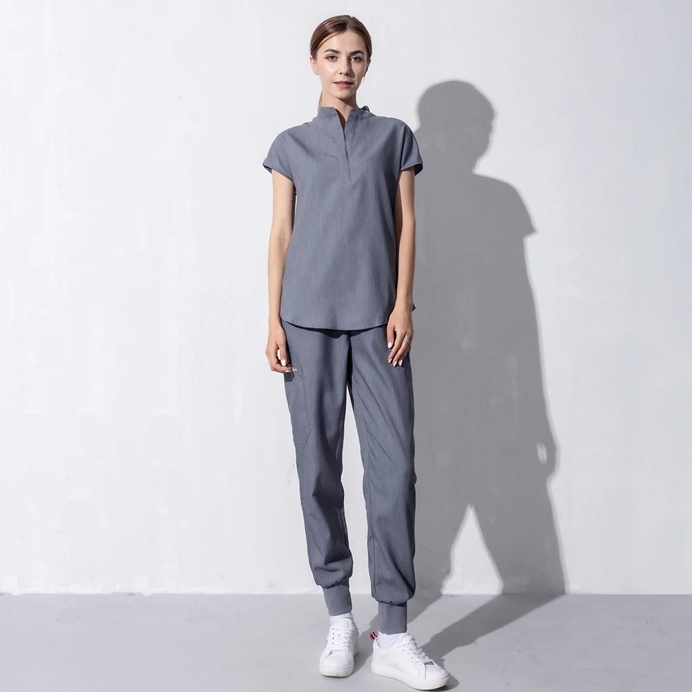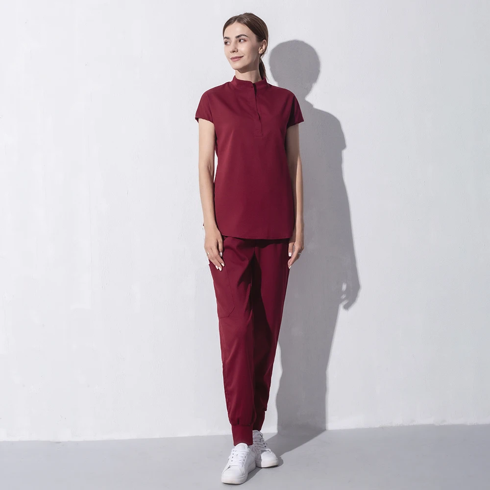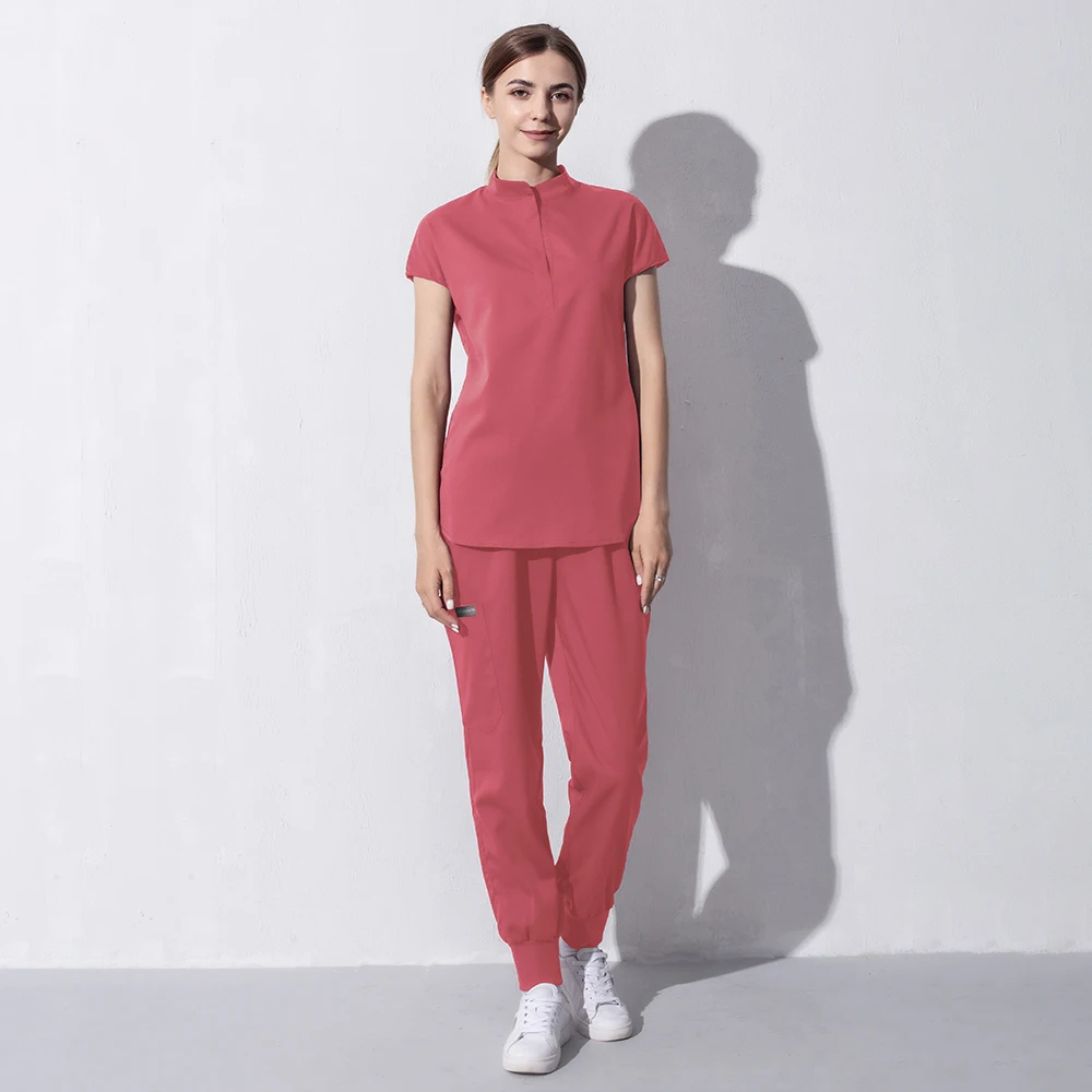 STRETCHY Beauty Salon Nursing Scrub Spa Uniform with Jogging Pants Set